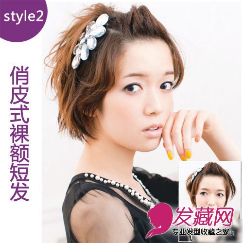 头发太短的MM发型变化较少,但如果要在短时间内变化多种发型,一定要善用“扭”和“收”的技巧,才能又快又有效率。这款简单而不失俏皮气质的裸额短发也有另一番味道,加上甜美的发箍点缀,使整个造型充满灵气!