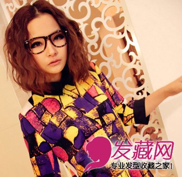 齐肩的中发烫发,随性蓬松的蛋卷头,个性时髦,而又有狂野都市女郎气息,暖色系发色显时尚抢镜。搭配豹纹的眼镜框更有范儿!