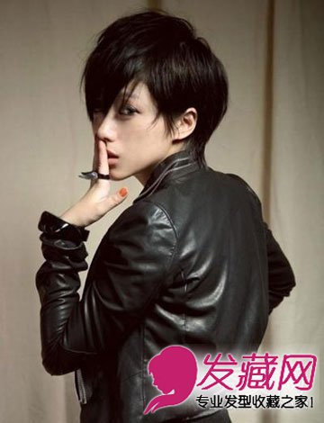 帅气的中性短发,纯黑的发色,头顶纹理分明的设计很帅气,适合喜欢简约风格的MM。