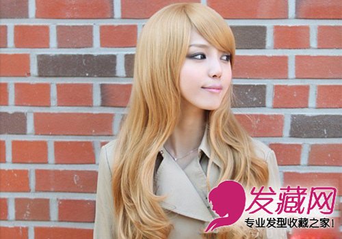 浅黄的染发色并不算高调。搭配着长卷发,低调却又不失华丽。半月弧度的刘海,会遮挡住你还不够完美的头型,即使是带点婴儿肥的女生,一样可以将妩媚演绎到底。