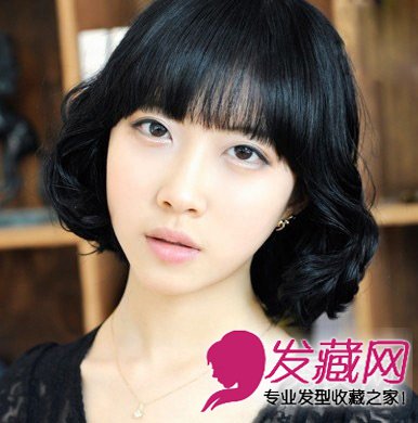 一款比较成熟的韩式短卷发造型,齐刘海的短卷发以及没有任何染发效果的黑色发色,是不是给人一种自然却精致的感觉呢!