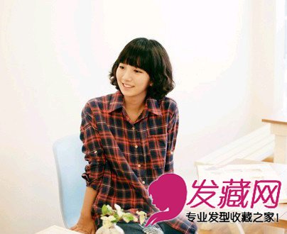 齐刘海的韩式短卷发发型,简单的齐刘海短卷发为发型打造出,一种较为自然的感觉。即便是搭上简单的格子衬衫,也会有时尚的感觉