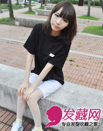 一款齐刘海的中短卷发发型,中短卷发相对与短卷发发型,会显的更加的有女人味。在修颜的效果上,也更好一些。