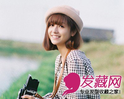 齐刘海的内扣短发发型。这款短发发型融入了梨花烫的效果,打造出一种文艺清新的感觉。