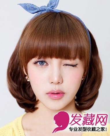 齐刘海的短发梨花头发型。在中短发的基础上,加上了梨花烫的效果。让这一款短发更加的有层次感,也更加的时尚。配上一款牛仔的发箍,非常的俏皮可爱。