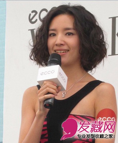 将头发剪碎之后,烫出小卷式的蓬松感觉,脸型修饰之余,深色的染发更加显露出形象美感。