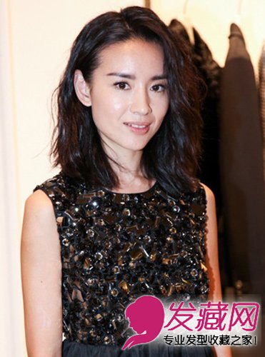 中分的刘海成了董洁的惯用款式,搭配上自然黑发与及肩发的结合,显露出气质。