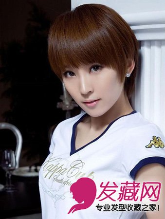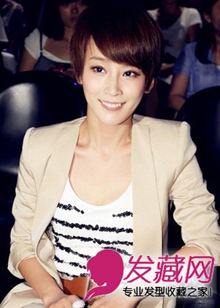 小编点评:干净利落的短发,额前的厚刘海与鬓角的处理,很好的修饰了脸型,衬托出了脸庞的柔美较小,配合运动系列的服饰,显得干净、青春洋溢。