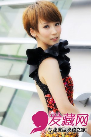 小编点评:依旧是款斜刘海的短发,换了暖洋洋的黄色,显的特别的时尚