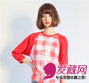 轻日系MIX欧系混搭,桃红色格子衫配牛仔裤,清新甜美,棕色齐刘海内扣波波头,红唇娇艳,气质干净简约