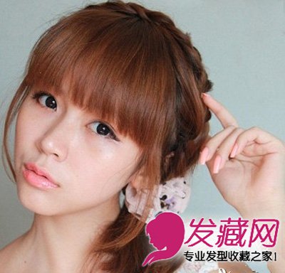 淑女发箍辫完成图:简单的淑女发箍辫就完啦,整体感觉非常甜美可爱,有着小女生的天真活泼,是非常减龄的一款编发发型哦.