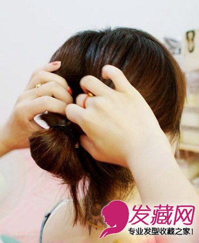 第二步:在扎发位置的上边掏出一个缝隙,将扎好的头发全部塞进掏好的缝隙中。
