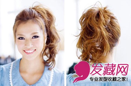 使用大号卷发棒将头发卷出曲度,再将马尾扎至头顶位置,随后将马尾轻轻拉出蓬松立体感。注意可以留出头顶刘海,往后扭转打造立体弧度后用发夹固定,增添优雅感。