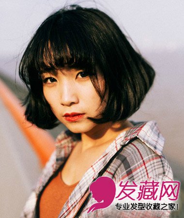 短卷发的造型十分的俏皮活泼,修颜瘦脸,很有韩流气息的一款时尚短发,齐刘海发型衬托出女生灵动的双眸,灵气十足。