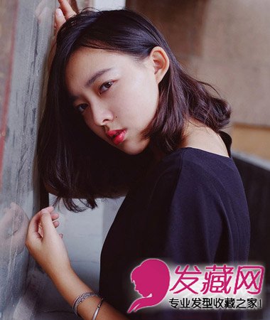 中分中短发造型,中分的刘海修饰出鹅蛋脸,柔顺的发丝加上发尾的内扣弧度,随性中多了份小女人的味道。