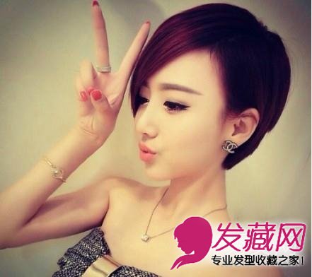 这款很摩登的短发,也以侧分为主,染上栗色的头发,露出的耳朵,让你的颈部线条很漂亮,如果你想青春阳光点的话,可以把头发拨蓬松点。