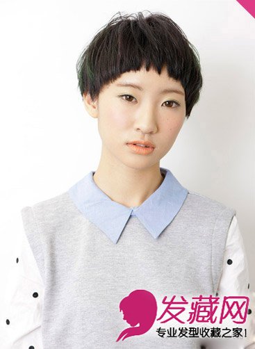 发型点评:这是长脸MM很适合的一款日系短发发型。额前的刘海剪裁出圆弧线条,凸显出秀美五官的同时无形中遮盖额头起到修饰头型的效果。让你瞬间摆脱大脸妹的称号。