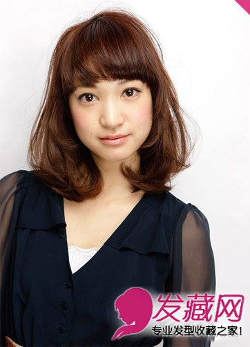 发型点评:棕色中短发烫出轻盈的卷发波,营造出饱满的卷发效果。齐刘海略带空气感,修饰脸型的同时为整款发型注入满满的清爽。