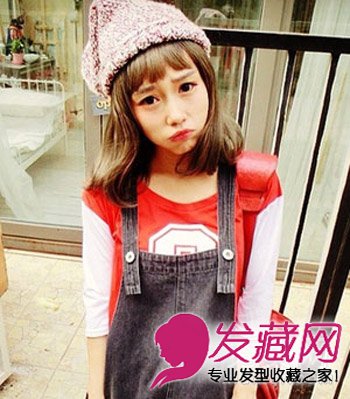 身材较小的小萝莉们最爱的一款韩式短发烫发,发丝中部微卷的波浪弧度,搭配齐刘海,精致的小脸蛋俏皮可爱。