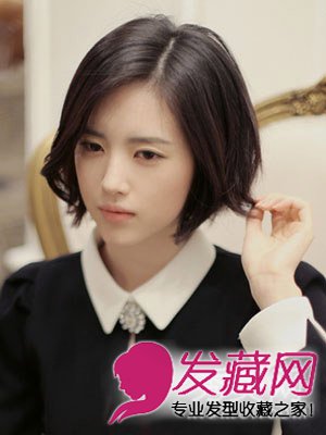 知性范儿十足的一款偏分韩式短发,对于胖女生来说,黑色相较于白色会让你看起来更瘦一点,而立领的衬衫则会让修身效果更佳。