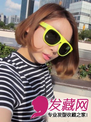 时尚潮范儿的韩系短发,偏分的短发内扣发尾修饰脸颊,染发令发丝更具时尚潮流气息,搭配墨镜炫酷吸睛。