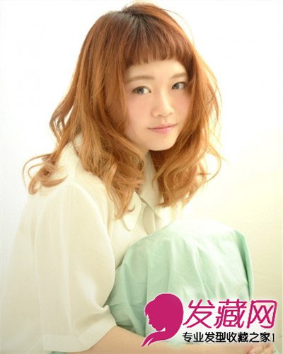 极短的齐刘海,不是每个女生都能把持的造型,两边卷发遮住肉嘟嘟的脸颊,与短刘海形成对比,却不失协调性,很好的露出脸蛋又不显得脸圆,很可爱的造型。
