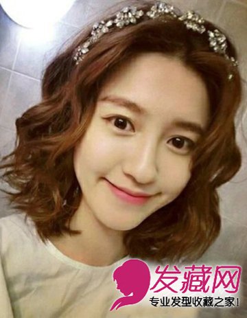 最后这一款女生中短发发型小编个人觉得特别适合新娘哦,这种蓬松感的卷发配合时尚的棕色染发还有中分的设计凸显着女生的清新甜美感,一定会让你成为最美的短发新娘的。