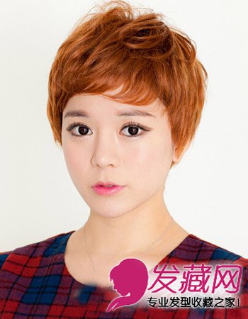 斜分的高额刘海发型,搭配金棕色的染发颜色,十分的减龄,也很衬美眉的肤色,再加上蓬松的韩式短发,完美凸显美眉的清纯气质。