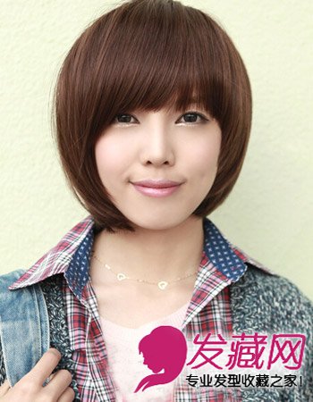 内扣的中长韩式短发发型,加上减龄的刘海设计,起到十足的修颜效果,展现一张精致的五官,再搭配时尚的棕色染发,更显妹纸的洁白肌肤。