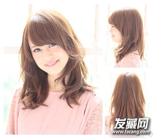 中发发尾多层次修剪再搭配上轻微烫发打造出凌乱个性发尾,斜刘海搭配鬓角能轻松修颜,让整款发型的甜美度增加。