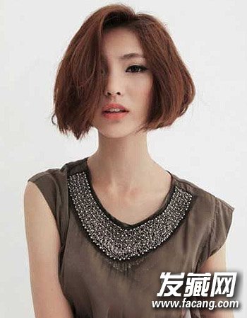 帅气的不对称短发烫发发型,一侧的发丝盖过侧脸勾勒出气质来,蓬松的烫发发型与发色的搭配显露出一种女王范的来,完美衬气质。