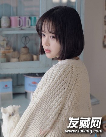 一款清新又简单的齐肩短发发型,柔顺显厚重的短发发型将女生的优雅与清丽展现出来,甜美的空气刘海轻盈透薄十分灵动,米色着装更添清新与淡雅,造型颇显淑女范。