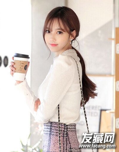 小清新扎发发型,甜美低马尾扎发简单清新,搭配空气刘海减龄养眼,白色衬衫搭配更显干练气质,很是OL一族。