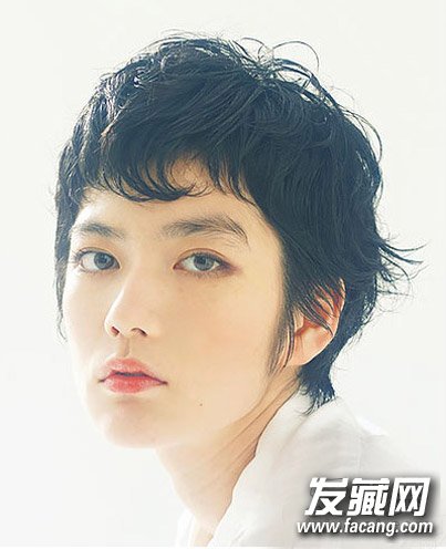 发型点评:黑色短发纹理饱满而略带蓬松,前额的刘海烫出卷翘弧度,俏皮又可爱。