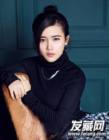 灵动活泼的丸子头当然也不要放过哦,帅气的长发刘海加上清爽动人的丸子头发型显露出别致的时尚感来,整个造型颇为时尚。