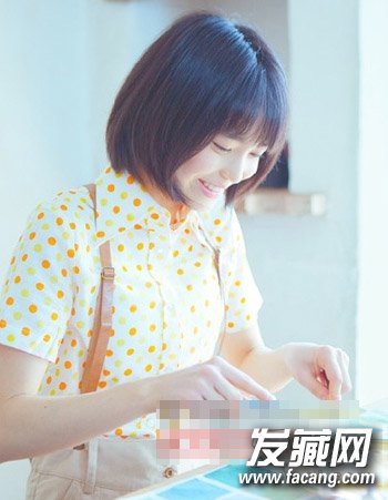 清新甜美的学生短发发型设计,透薄的空气刘海轻盈灵动,加上中短直发发型的设计打造出个性与时尚的一面来。柔亮的发丝十分讨喜、