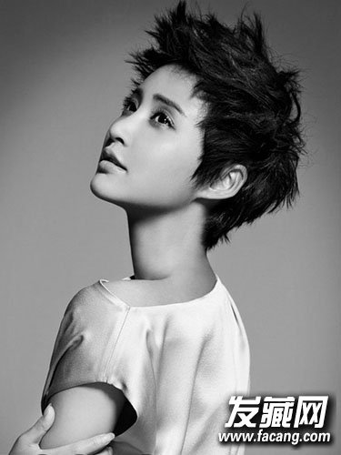 简单利落短发造型蓬松有层次,中性十足的打扮帅气加分。