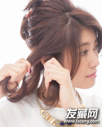 最后将剩余的下半部分头发扎成三股辫,甜美中短扎发完成。