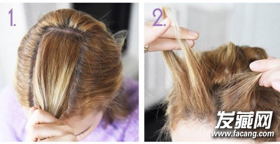 步骤1:在头顶处分离出两英寸宽的头发,置于头顶处。
