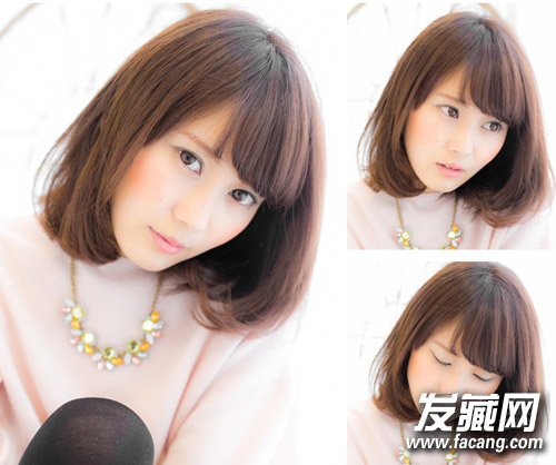 内扣的直发波波头不仅能修出小脸,让妹子变得可爱甜美,且棕色头发让肤色看起来更加的粉嫩柔和。