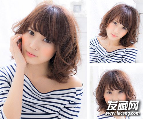 萌萌的刘海搭配外巧发丝修饰脸型,蓬松的中短造型在视觉上增添瘦脸效果,同时也让造型时尚有个性,展现妹子魅力。