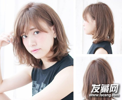 轻薄的刘海搭配中短发清爽透气,发尾不同梯度修剪再搭配内扣外翘设计让造型时尚有范。发量多的妹子在此基础上还需要将天头发削薄,再将处理发尾。