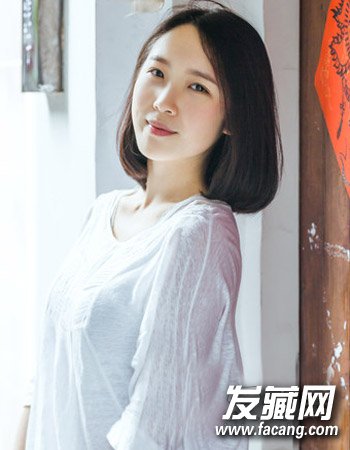 对于两颊比较突出的妹子们来说这一款气质的中长发波波头发型就是不错的选择哦,个性的内蓬加上发尾的内扣勾勒出别致的时尚感来,而且搭配上清新的白色衬衫显得十分文艺气质。