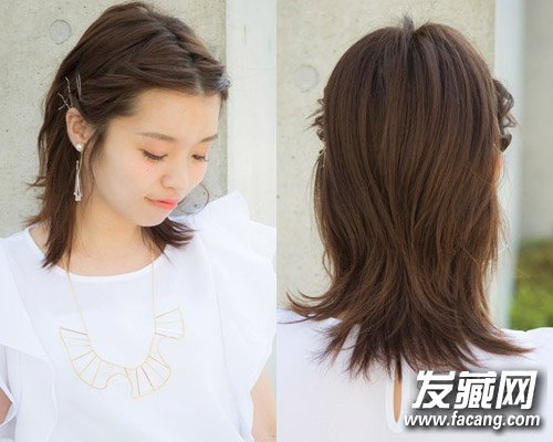 中分刘海扭转出别致的纹理,用发夹固定后露出一张清爽的脸蛋。巧用细发夹,UP精致气质。