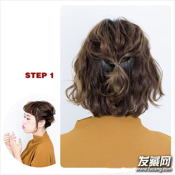 首先在后脑勺位置取秀发向中间扭转使其蓬松并扎成一个半马尾形状。