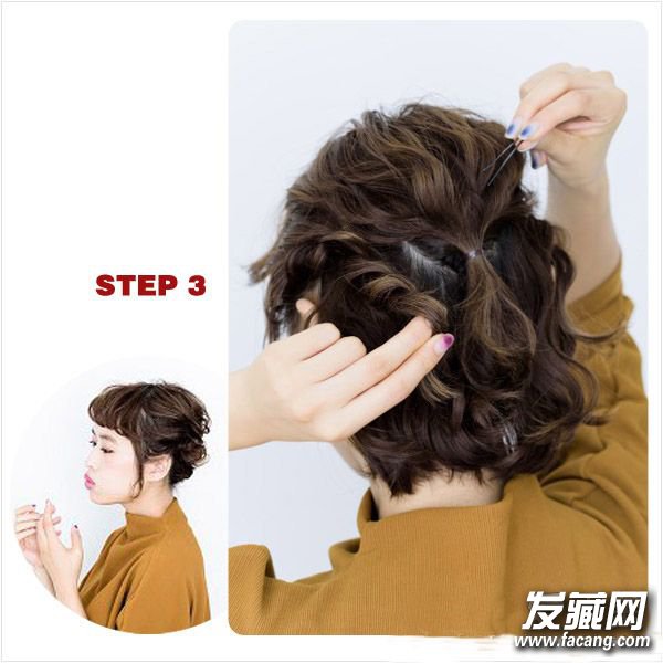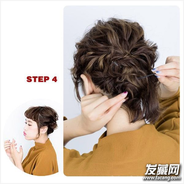 把发梢头发分成左右两部分,并各自向上扭转并用发夹固定就完成了。