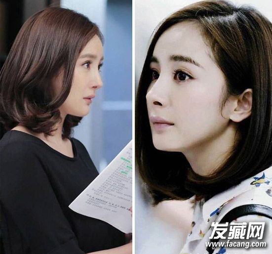 因为杨幂脸型比较方,一般的齐耳短发会让她的下巴部分的缺陷变得比较明显,而这款lob发型则很好的修饰了这一款,还突出了她漂亮的眼睛呢。