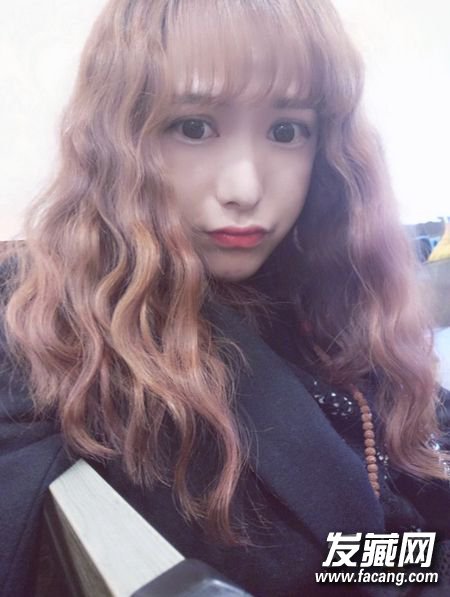 长卷发+齐刘海+蛋卷头,标准萌妹标配蛋卷头,可爱又减龄。