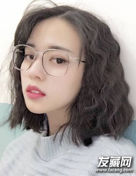 发尾剪裁整齐的蛋卷头,蓬松烫发遮住两颊显脸小,配上女生清秀很显气质。