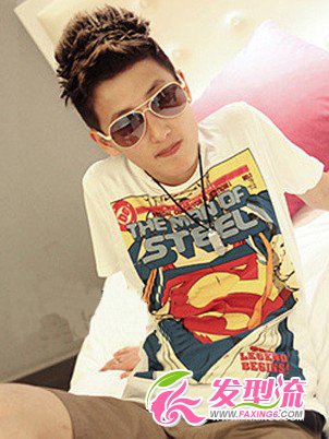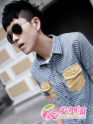 这款莫西干头对于90后的男生来说一点都不觉得陌生!时尚与复古的产物,好看的鬓角与从发顶开始的覆盖式齐刘海形成了鲜明的对比,黑色的沉稳色系凸显出青春洋溢气息,搭配一款黑色墨镜和条纹衬衫,时尚帅气!